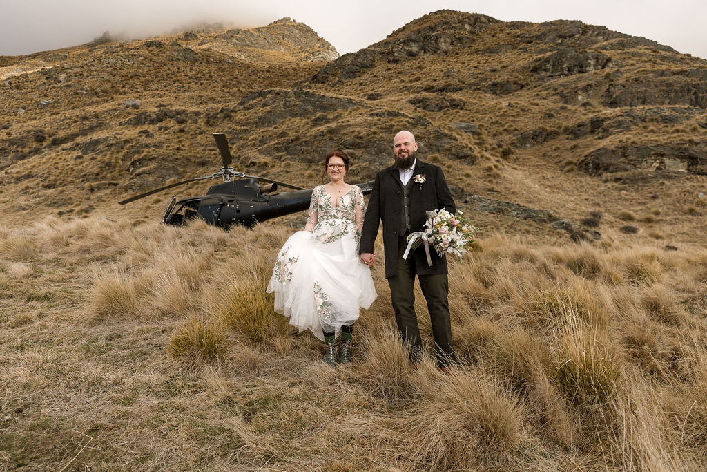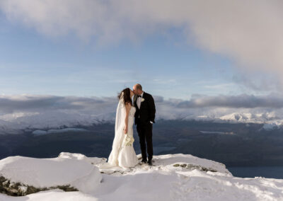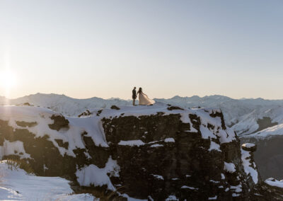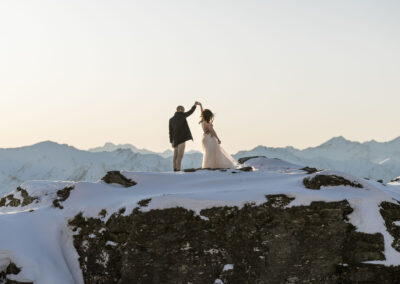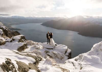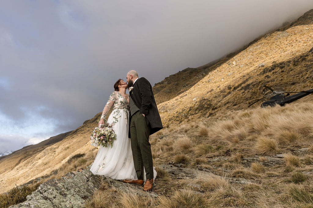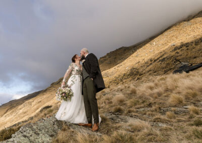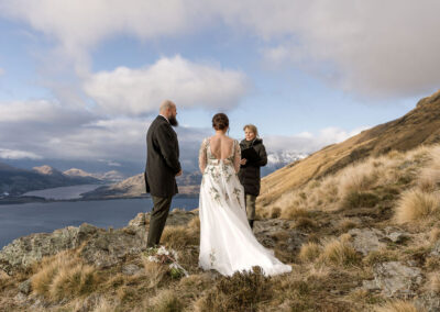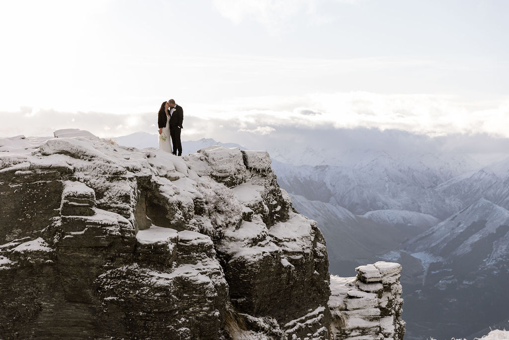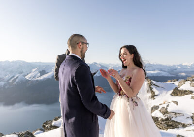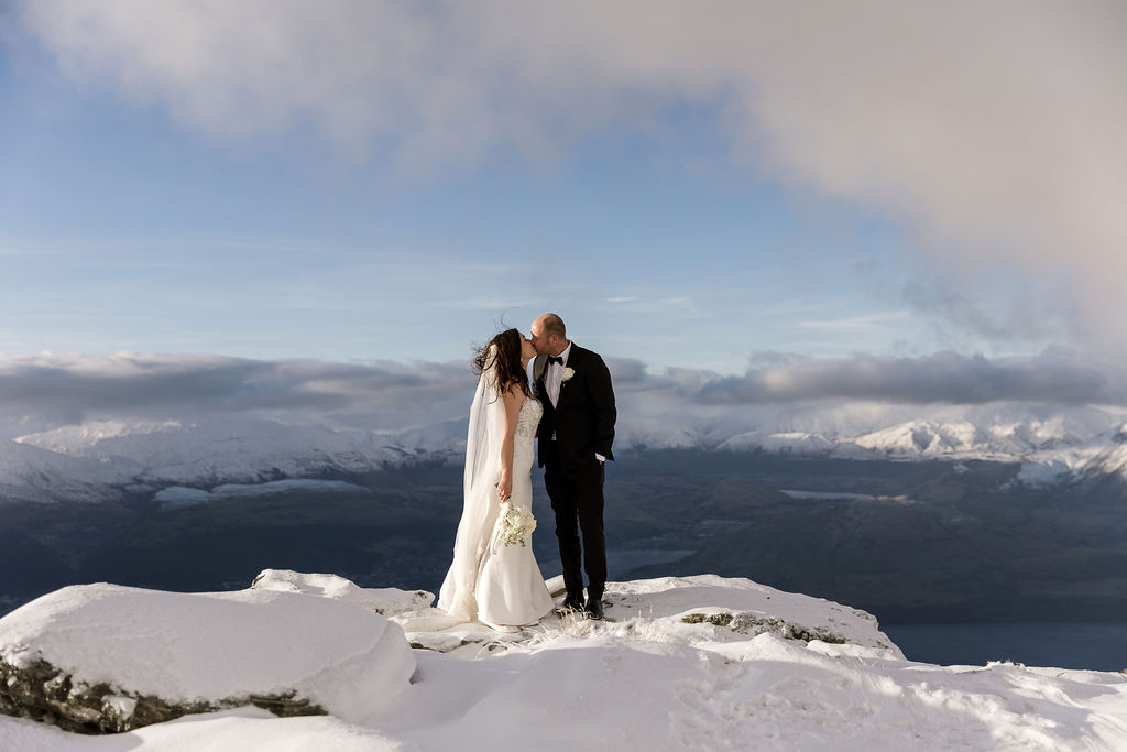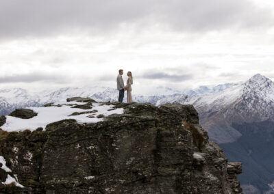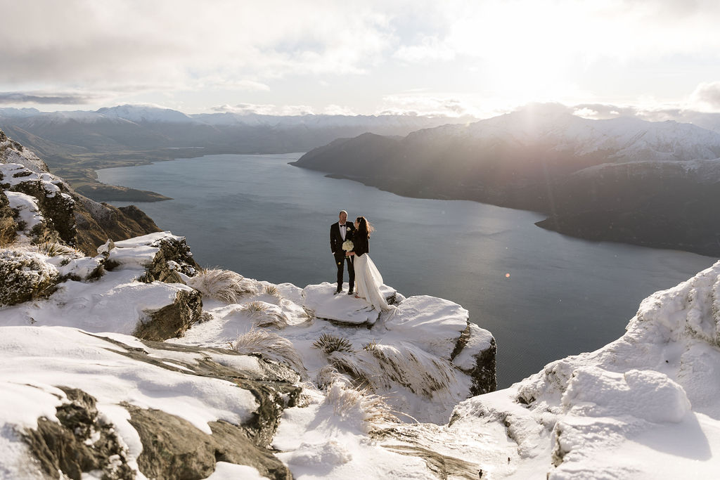 With absolutely outstanding views overlooking Queenstown, the Remarkables, and the western arm of Lake Wakatipu, The Ledge is a favourite heli wedding ceremony or heli wedding photo location when flying from Queenstown.