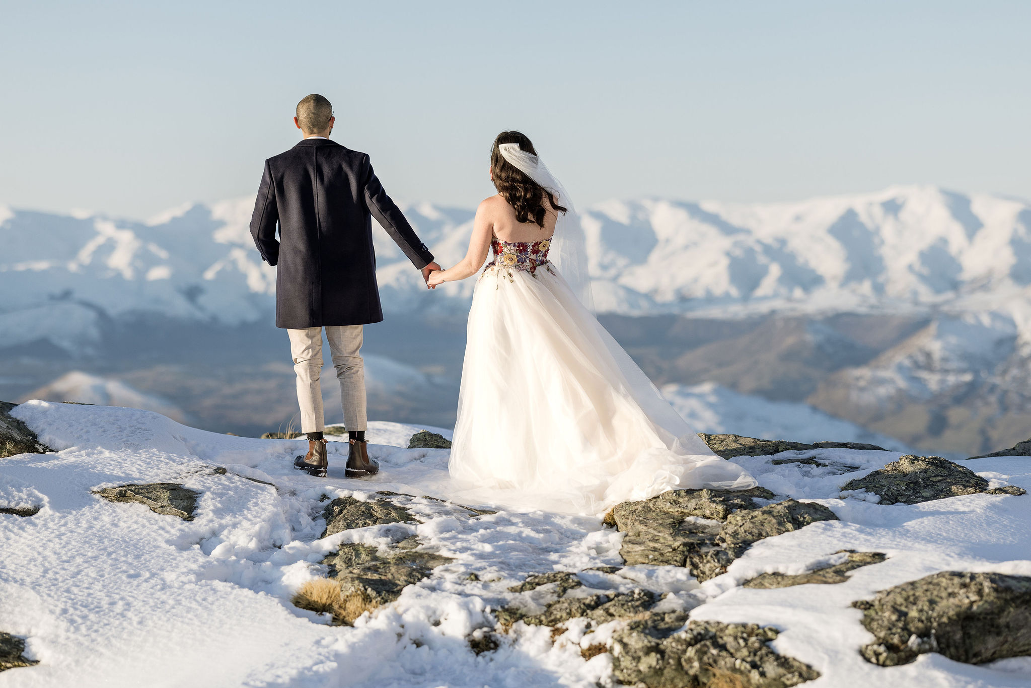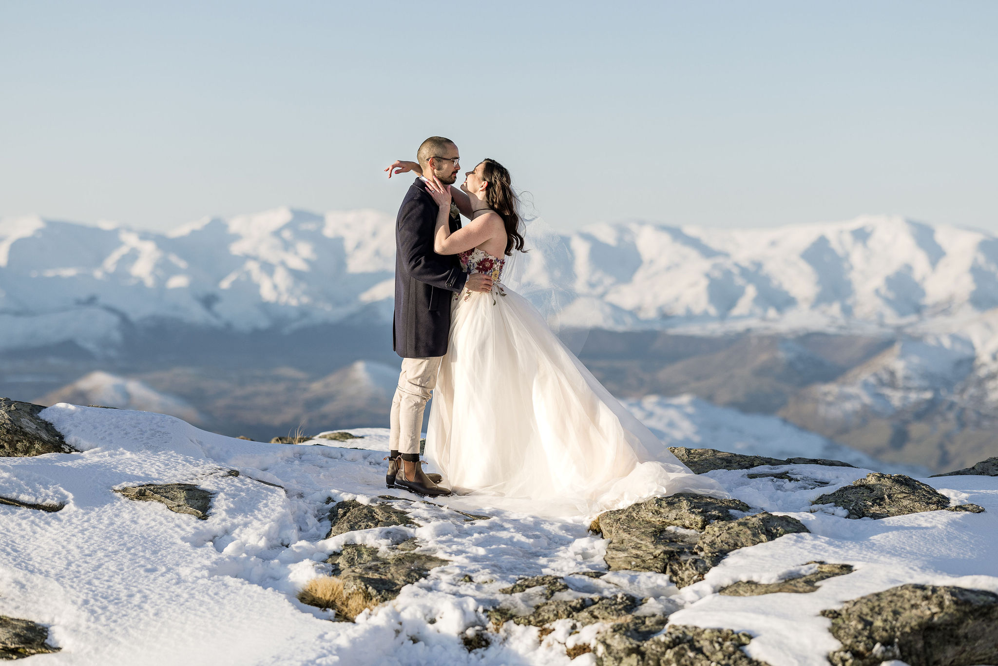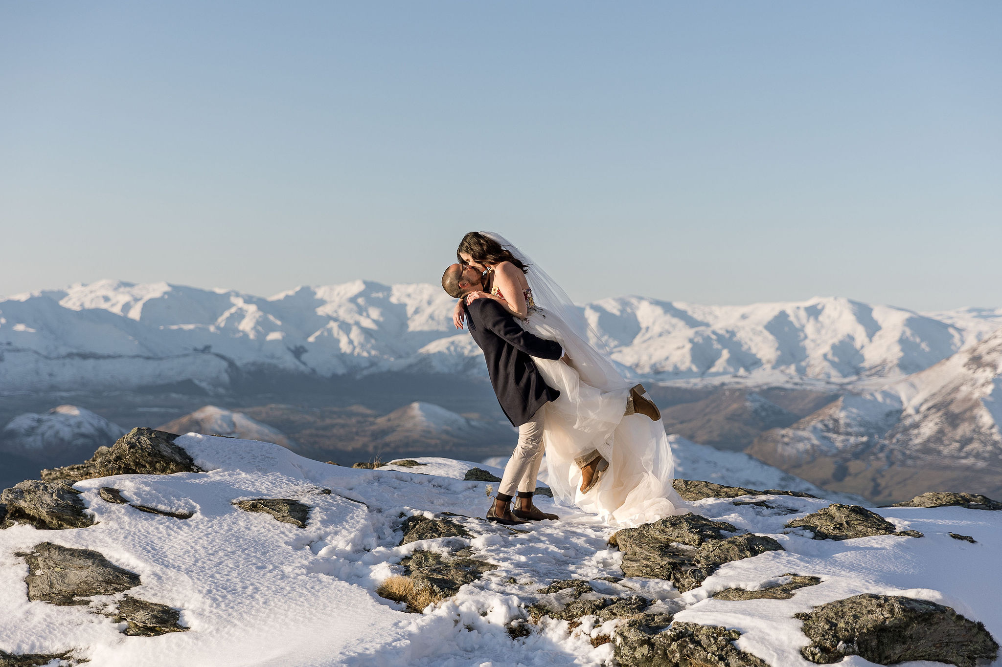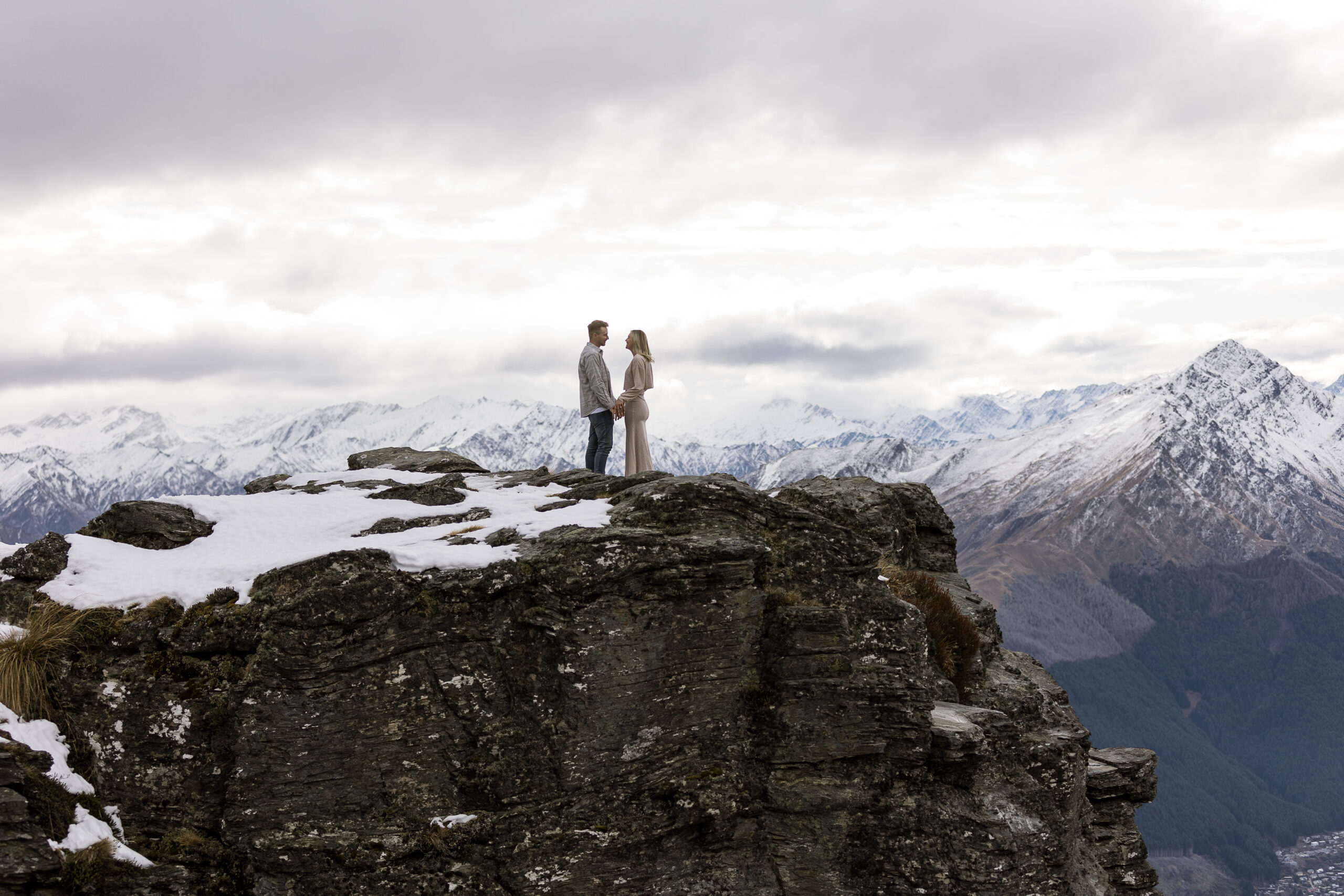 With absolutely outstanding views overlooking Queenstown, the Remarkables, and the western arm of Lake Wakatipu, The Ledge is a favourite heli wedding ceremony or heli wedding photo location when flying from Queenstown.
