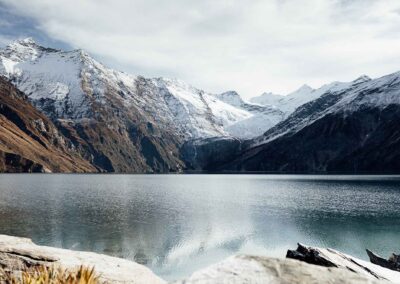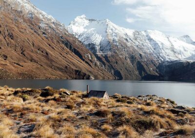 Lochnagar is one of the largest alpine lakes we can land at and is one of the most impressive. Originally created by a massive land slide, this magical area has a few heli landing locations around the lake edge. The pristine lake can beam beautiful dark blues and greens depending on the weather and time of day. The eastern end of the lake is home to an old-style musters hut (rebuilt in 1990). In the west we land on a beautiful pebble beach looking back over the lake at the Pine Spur.